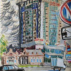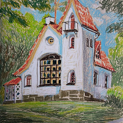 Надежда Ермакович : «Сухой пастелью я рисую очень давно, но масляная пастель стала для меня с недавнего времени настоящим открытием! Она сочнее и выразительнее, чем сухая. Настолько, что даже быстрый набросок выглядит ярко и живописно — пастель сразу даёт плотный цвет, чистый и свежий, бархатистую поверхность фактуры, живость и волнующую вибрацию штриха. Меня привлекло в ней и многообразие техник: можно работать в деталях, а можно — свободно и смело. Поэтому выставку я назвала «Между штрихами» - потому что я работаю с натуры и так быстро, что дышать успеваю только между штрихами. Люблю работать в большом формате, и не люблю затягивать работу, поэтому скорость здесь для меня важна. Очень нравится, что она проста в использовании, не боится воды, можно легко работать на улице, на пленэре. Рисую на любой плотной тонированной (цветной) бумаге, но предпочитаю старые советские обои».