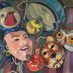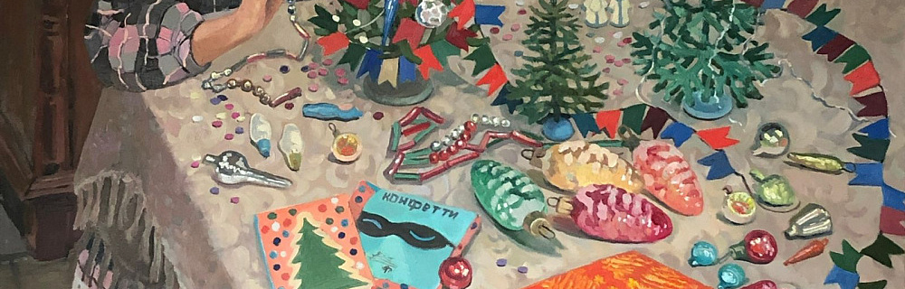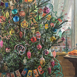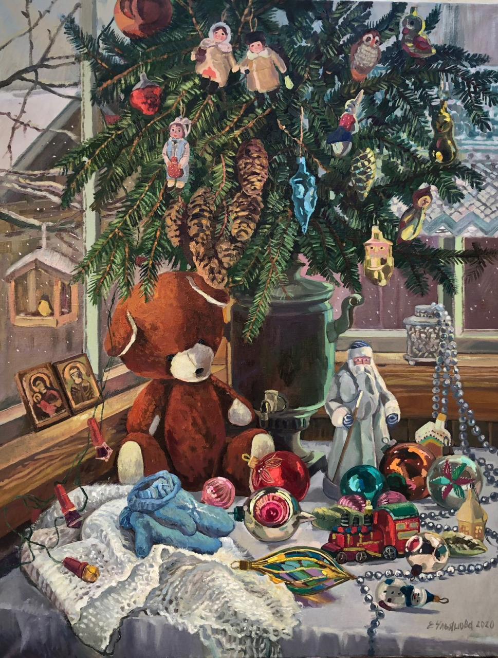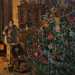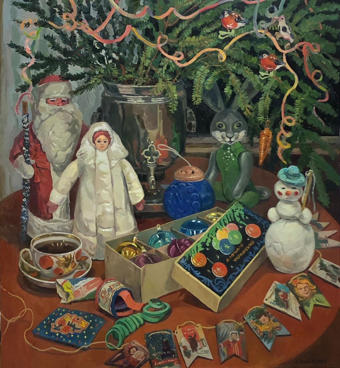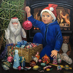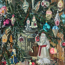На выставке «В мире ёлок и игрушек» представлена серия новогодних произведений, выполненных в технике масляной живописи, с 2020 по 2025 год.